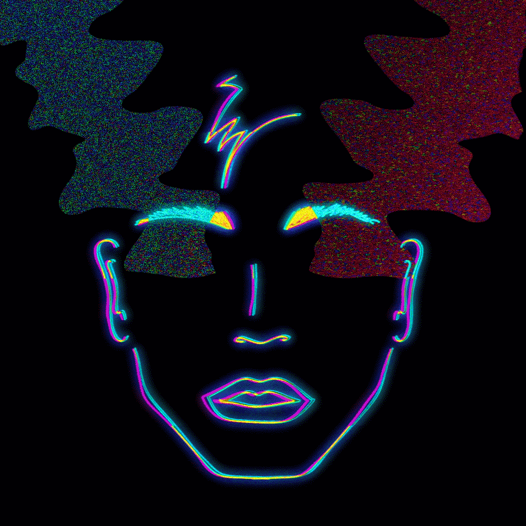 This GIF was developed, commenting on the digital void that we all seem to find ourselves in after spending the entire day staring at screens. The portrait, rendered with distorted and glitching neon lines, shows a disconnected face, with eyes radiating static and listless expression.